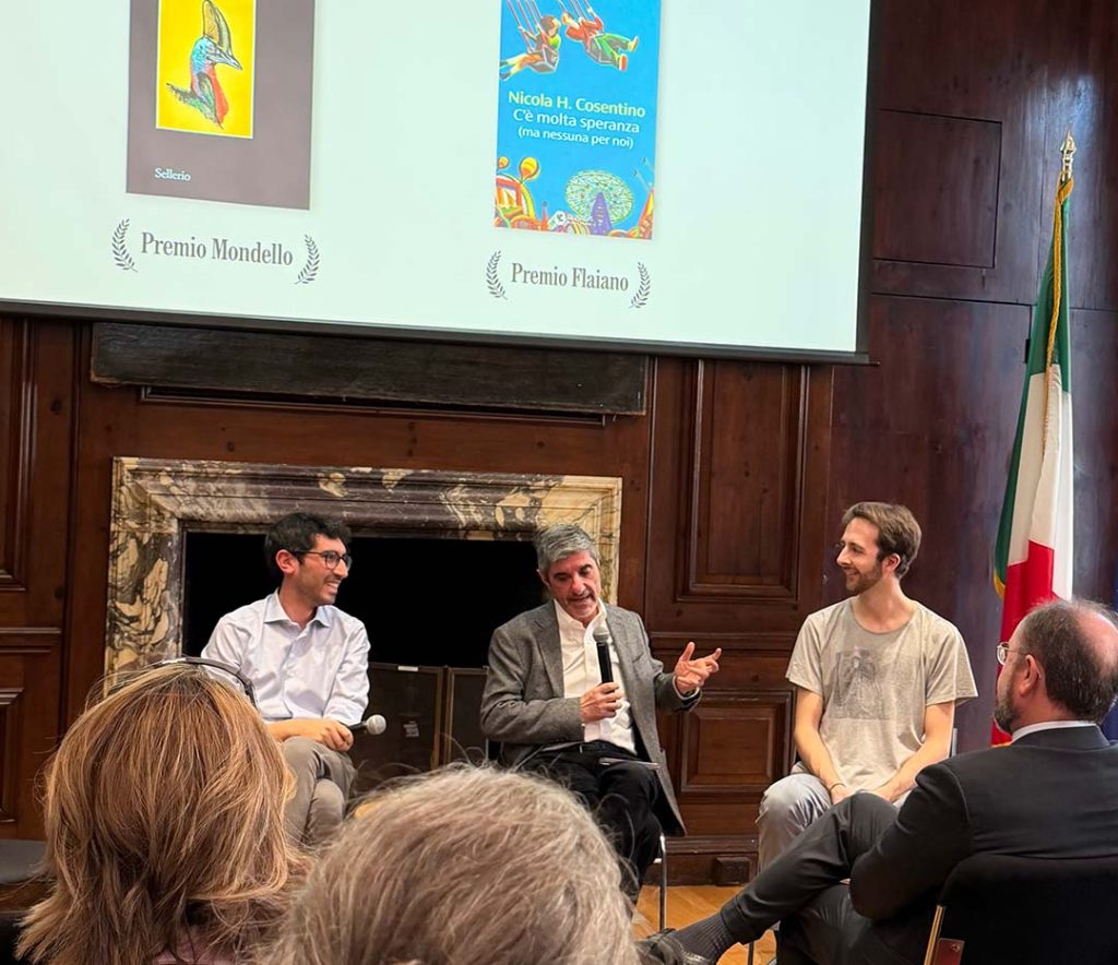 Il primo panel, moderato dal giornalista Gianni Liotta, ha messo al centro due voci della narrativa italiana più recente: Nicola H. Cosentino, con C’è molta speranza, e Leonardo Sanpietro, autore di Festa con Casuario. Liotta li ha presentati come espressione di una “cultura italiana viva, contemporanea, che si sta maturando, che sta cambiando, che sta sperimentando,” capace di parlare alle nuove generazioni attraverso quello che ha chiamato il “linguaggio dello scrolling”, una narrativa veloce, tesa, modellata sui ritmi dell’attenzione digitale. Un elogio, non una critica.